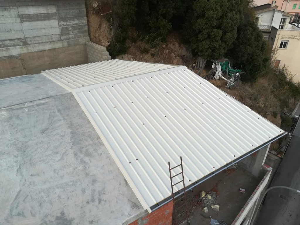 Tetto in coibentato con lana di roccia e ferro zincato che isola dai rumori della pioggia….gronde in acciaio inox